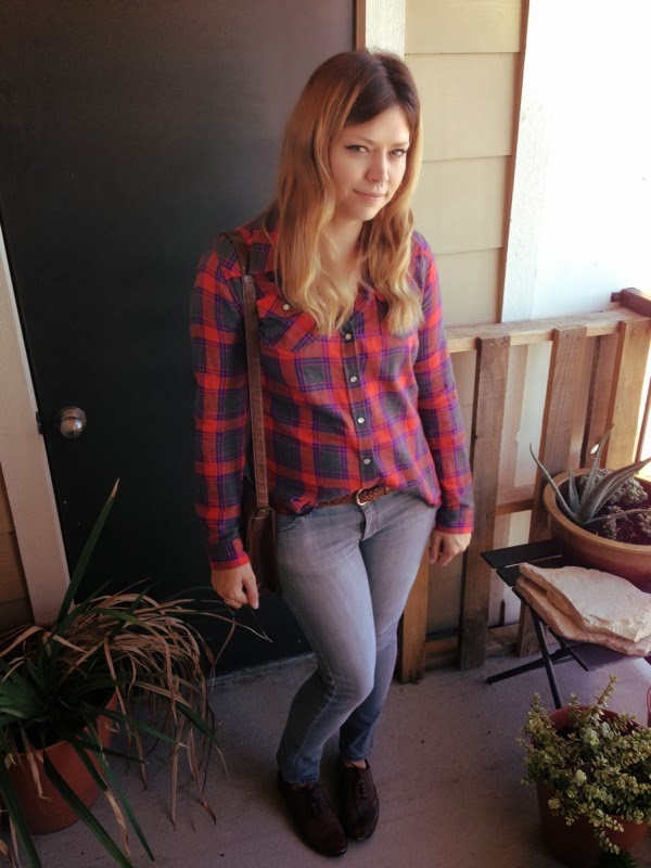 This flannel is a recent purchase from Target. Both the satchel and oxfords are also from target.
